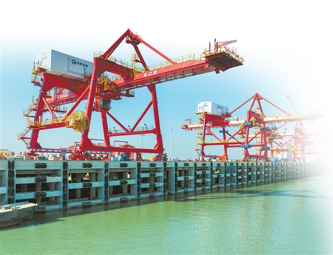 11月25日,由中交二航局承建的周口港中心港区中心作业区工程(一期)码头平台主体结构全面完工。 记者 聂冬晗 摄