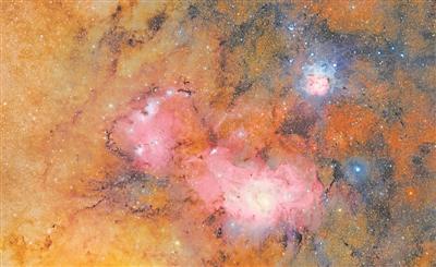 团队还公布了一幅由三叶星云与礁湖星云构成的拼接图像。这两片恒星诞生区位于人马座,外观宛如宇宙中的云团。这幅马赛克图由678张图像拼接而成,拍摄总时长仅为7小时,却捕捉到了此前从未观测到的微弱细节,例如星云中的气体和尘埃云。这些星云距离地球有数千光年之遥。