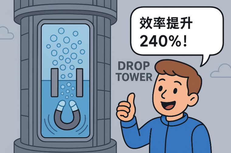 科学家们在德国不莱梅(Bremen)的“落塔”(Drop Tower)里做了实验。这个塔能模拟出几秒钟的微重力环境(就像太空一样!)。他们在一个电解槽下面放了一块普通的钕磁铁(就是你平时玩的那种强力磁铁),然后通上电,观察气泡的行为。