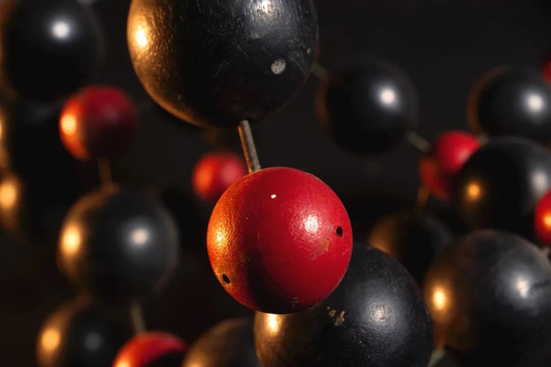 孔洞的位置并不是随意摆放的,而是在特定的位置。小球和棍子搭建好后,就能呈现特定的物质结构。就是在这个过程中,罗布森突然有了一个想法:我现在是用宏观的物体表现微观,那么微观的分子结构,能不能也按照我宏观的想法去搭建呢。能不能拿金属离子做小球,有机分子做木棍呢?
