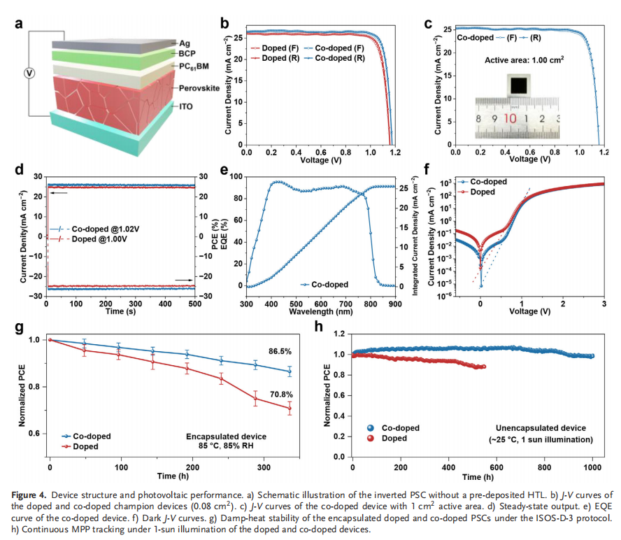 • 湿热环境考验:在 85℃、85% 湿度的 “蒸煮” 条件下放 336 小时(14 天),效率还能保留 86.5%,而只加 DMAcPA 的电池早就掉到 70% 以下。