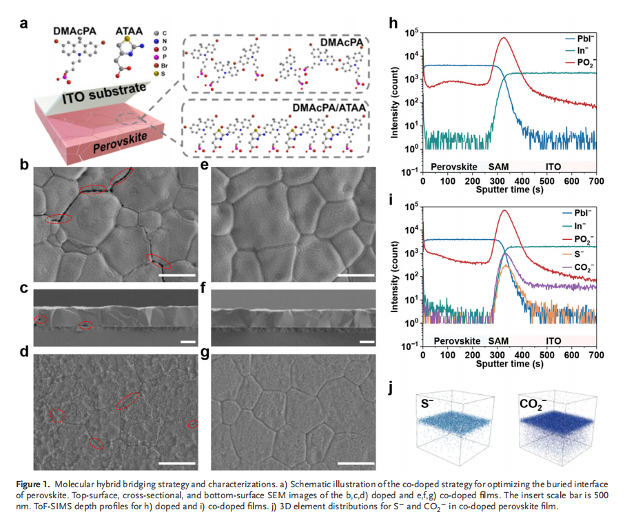 3. 双重修复缺陷:ATAA 的氨基(-NH₂)和羧基(-COOH)就像 “小补丁”,不仅能和 ITO 形成牢固的配位键,还能填补钙钛矿表面的未配位 Pb²+ 缺陷(这些缺陷是电能流失的 “黑洞”),相当于给界面加了一层 “保护罩”。