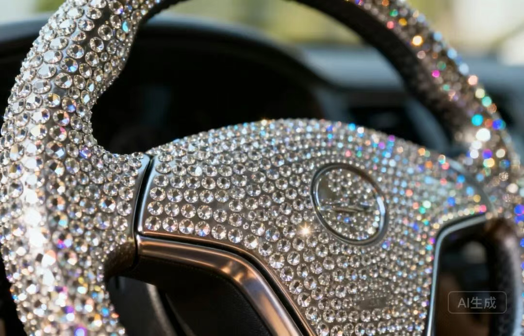 在方向盘中央贴水钻、亮片或加装硬质装饰物,是极其危险的行为!方向盘中央正是主驾驶安全气囊的弹出位置。