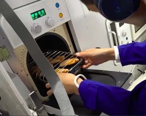 我国航天工程师通过设计专用热风循环系统解决了这一问题。工程师研制的热风烘烤机内置精密风道和风机,强制驱动热空气在炉内形成360度循环流动,确保热量覆盖每一处食材。同时采用动态控温技术,实时监测食物各区域温度,通过调整风机转速让食材受热均匀。这套系统将加热温度从以往太空加热设备的100℃提升至190℃,达到地面烧烤所需的焦香温度。